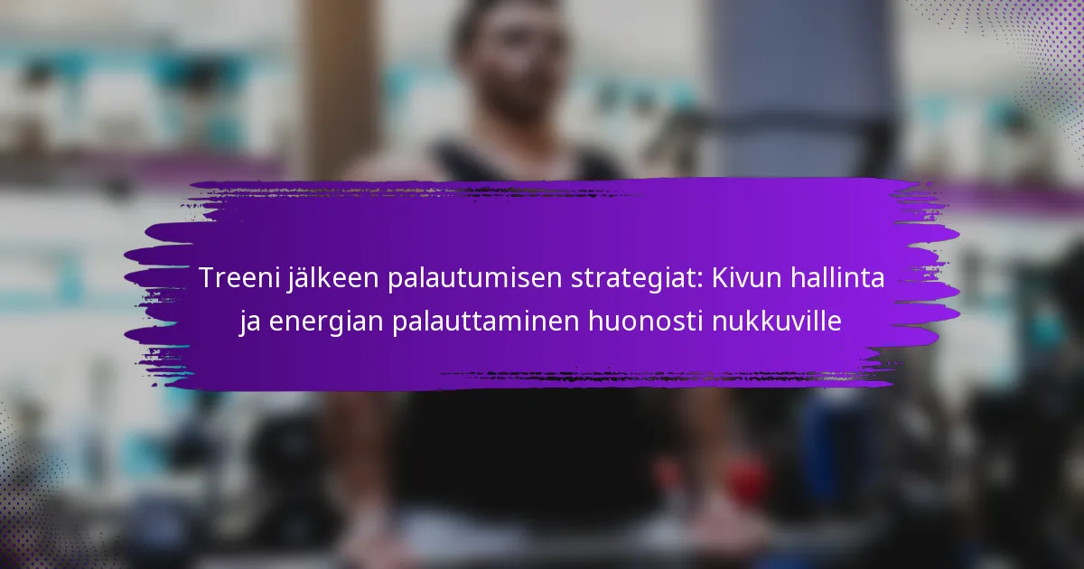 Tehokkaat harjoituksen jälkeiset palautumisstrategiat huonosti nukkuville keskittyvät lihaskivun hallintaan ja energian palauttamiseen nesteytyksen, ravitsemuksen, venyttelyn, palauttavien harjoitusten ja mindfulnessin avulla. Näiden strategioiden toteuttaminen voi auttaa lievittämään epämukavuutta ja parantamaan kokonaispalautumista, vaikka unen laatu olisi heikko.